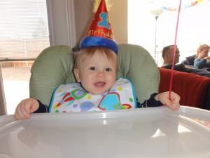 We held your first birthday party on Saturday, January 8th at two o’clock. We invited a bunch of Mommy and Daddy’s friends who have children, as well as Grandma, Grandpa, Mimi, Pappa, and Meemaw. The person who came from the furthest away to celebrate with you was Daddy’s friend, Osman, who drove up from Austin. The people who came from the closest location to celebrate with you were our neighbors: Nana, Makayla, Mike, and Jessica.