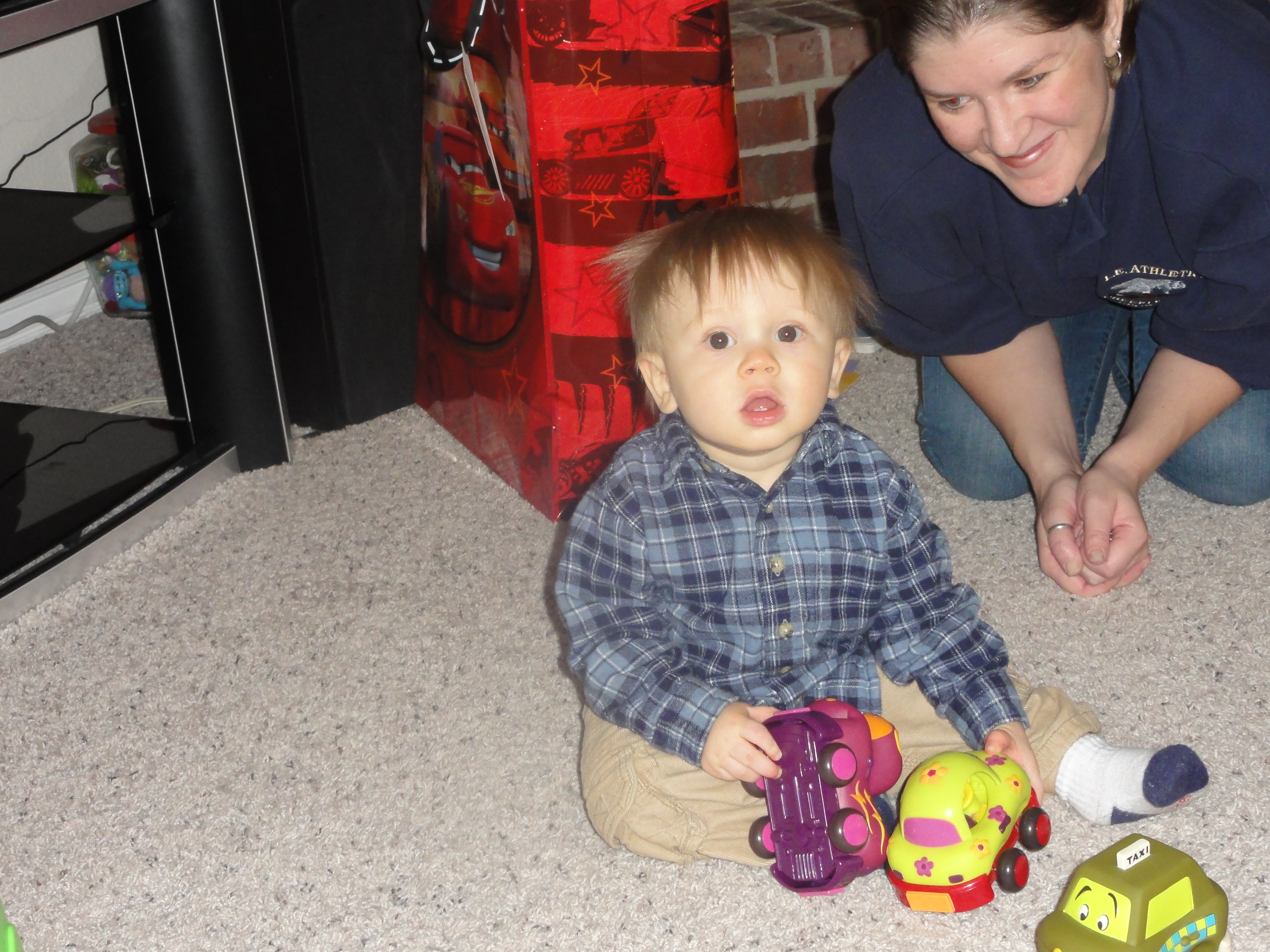 We didn’t open presents at your party because you were already pretty overwhelmed by the end. We waited until the following day for you to open all your gifts, and boy did you have fun! You liked all your presents, but your favorites so far seem to be the workbench that Daddy and I gave you and a set of cars that Jackson and his mom, Candace, gave you.