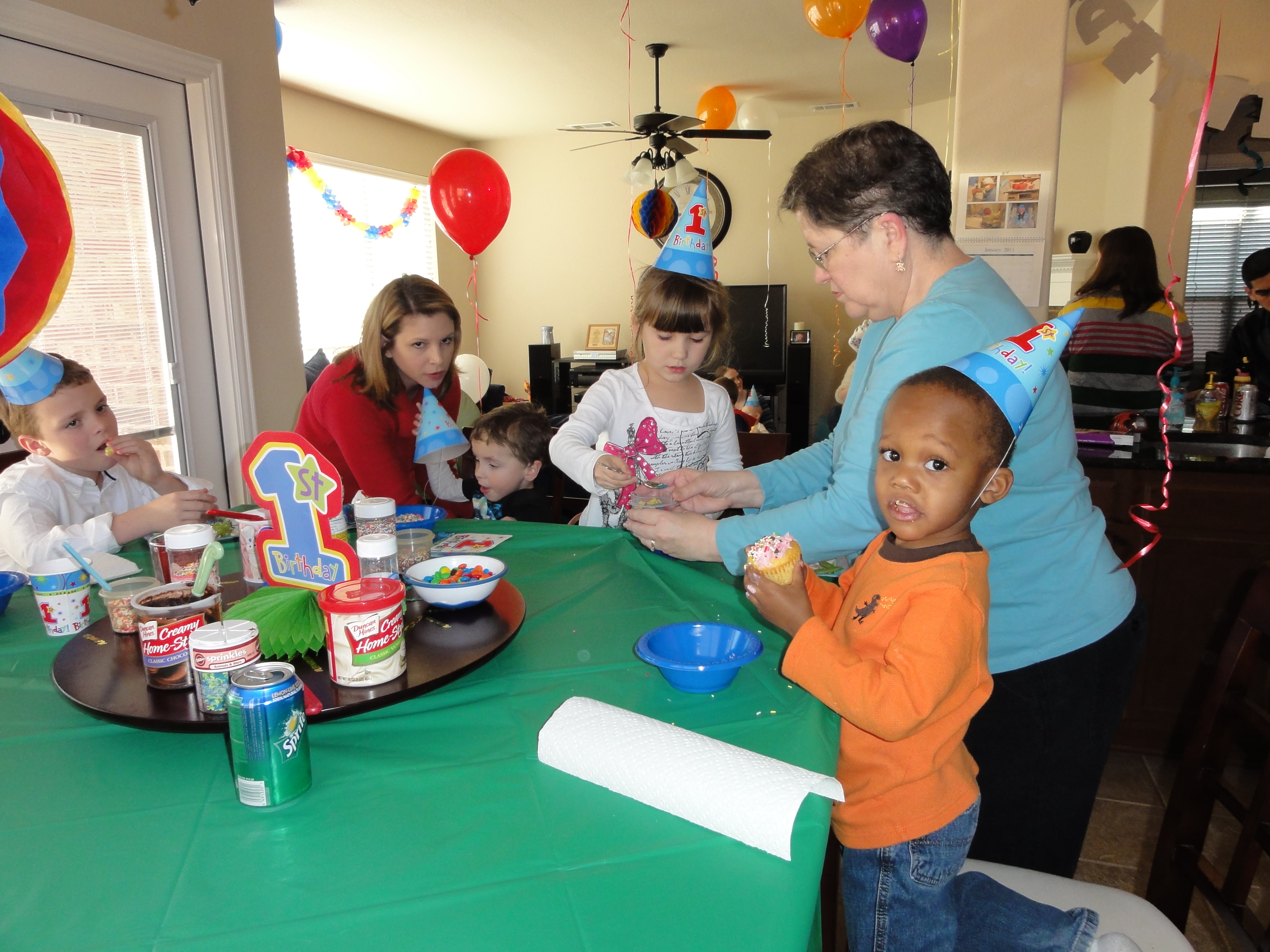 Most of the children who were at your party were a lot older than you. They had a lot of fun running around the house playing with the helium-filled balloons that we had as decorations. You did not know what to make of the whole situation. I thought you might get overwhelmed, but you just stared in amazement at all the activity going on around you.