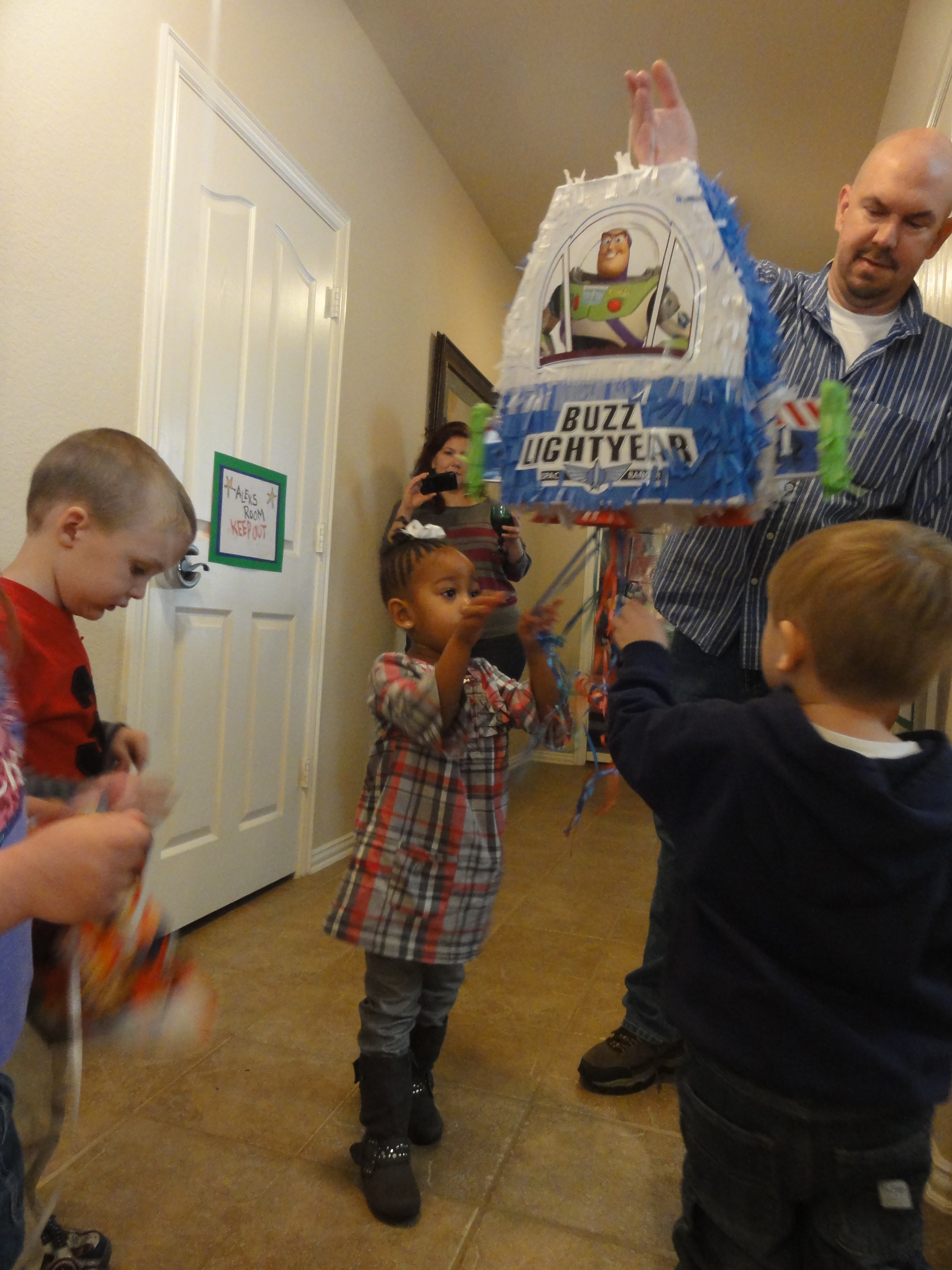Finally we broke into a Buzz Lightyear pinata all while Toy Story was playing on the television.